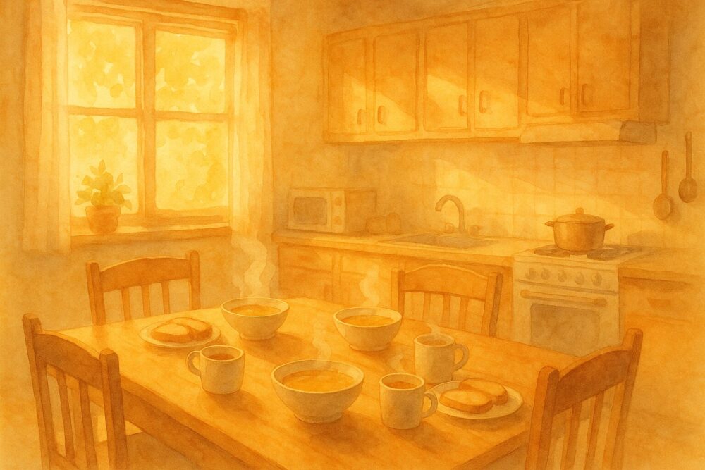 祖母のキッチン、家族が囲んだ夕暮れの食卓。